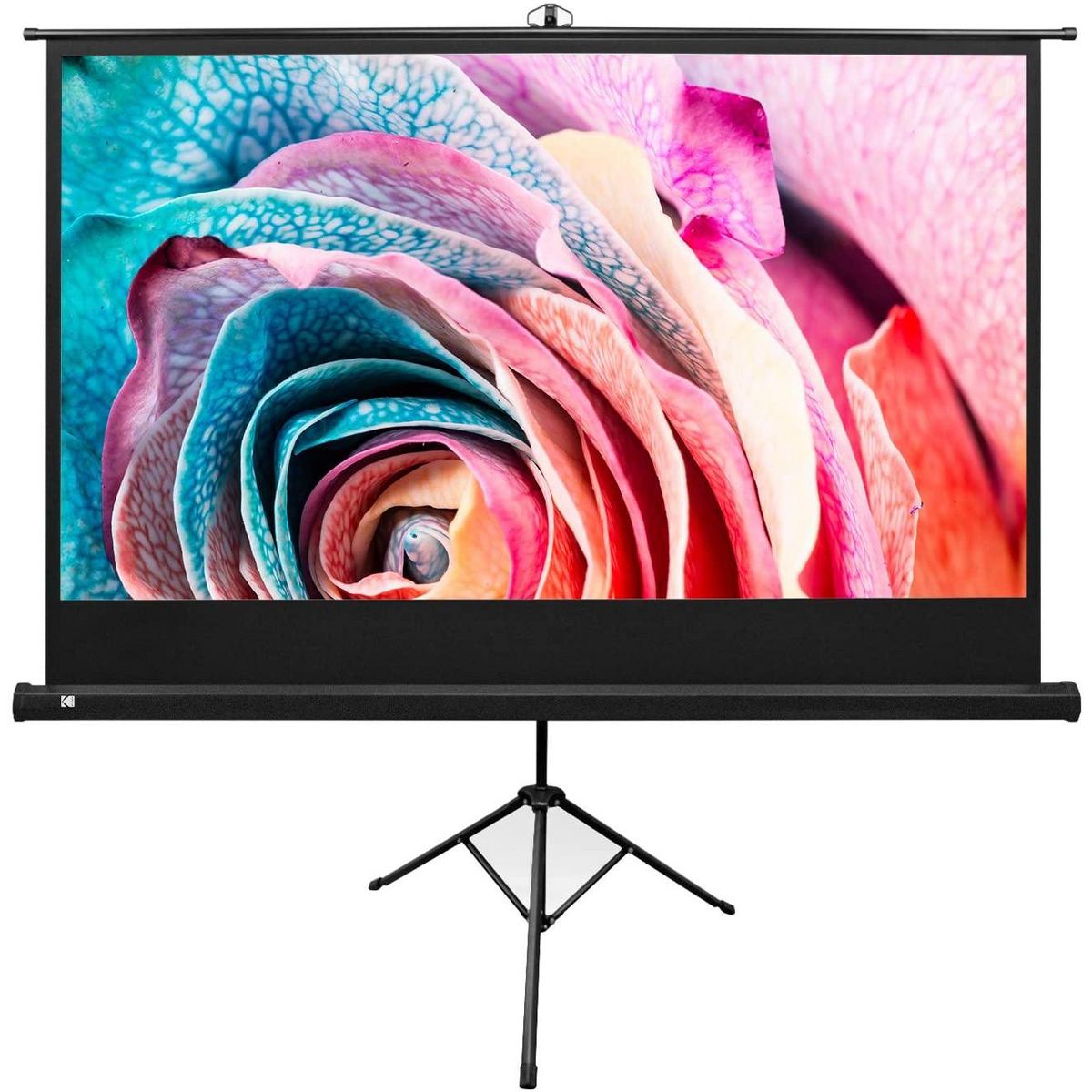 In just a few minutes have the screen set up anywhere you need it. This high-quality screen and sturdy tripod stand provide vibrant, consistent enhancement to any visual medium. The perfect movie night, school lesson, or business presentation is just around the corner with the Kodak 100" portable projection screen with stand & carrying bag.