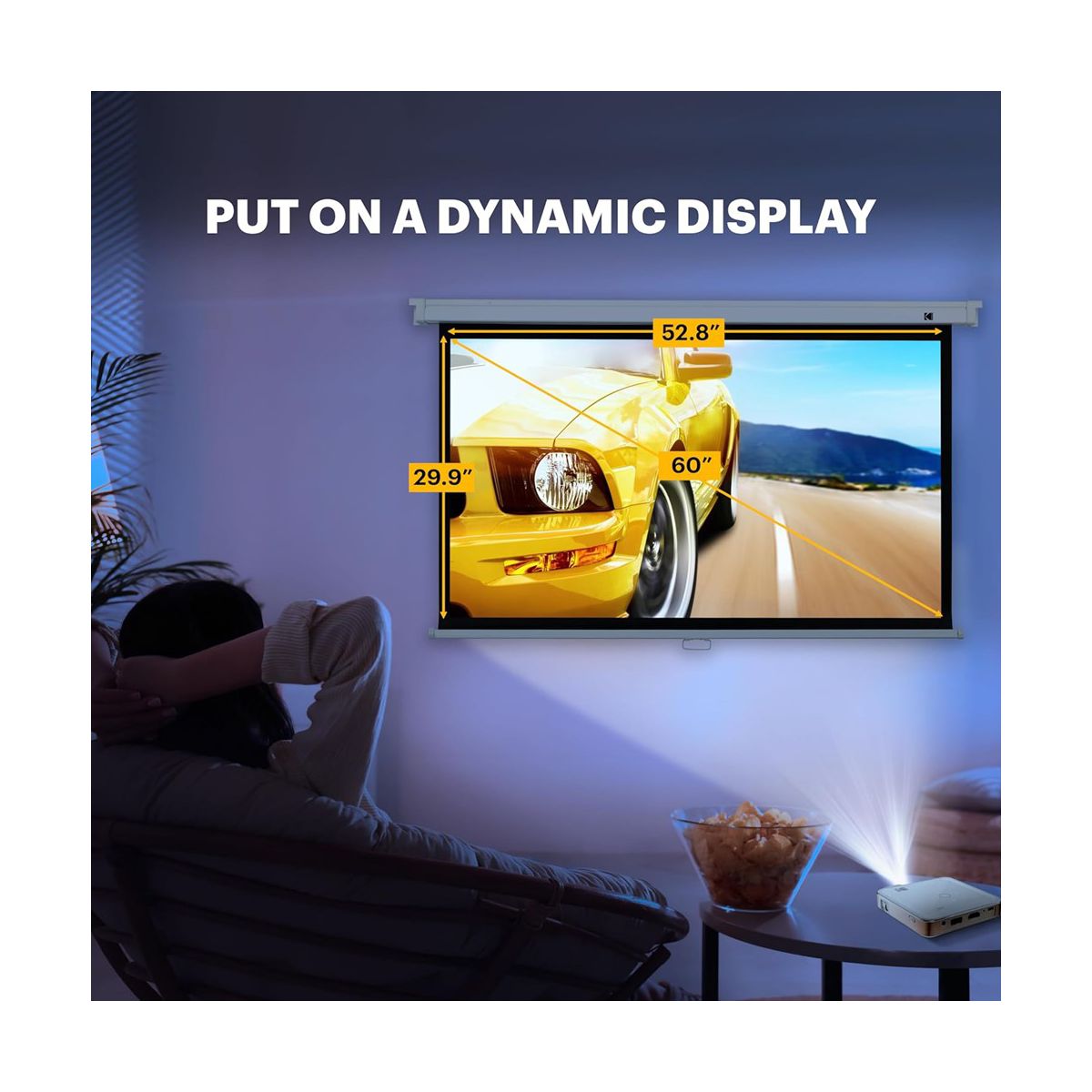 Kodak 60" Manual Pull Down Projector Screen, Large 16:9 Retractable Projector Screen