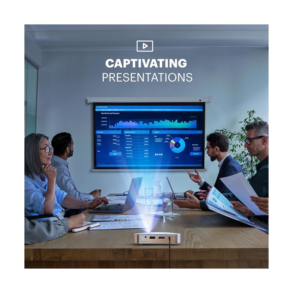 Kodak 60" Manual Pull Down Projector Screen, Large 16:9 Retractable Projector Screen
