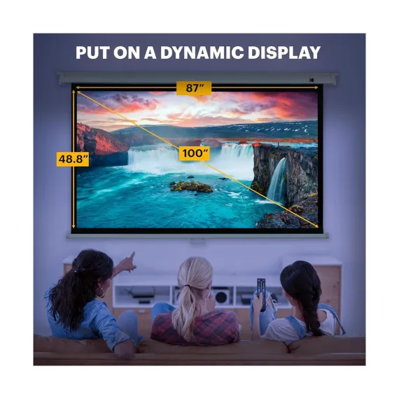 Kodak 60" Manual Pull Down Projector Screen, Large 16:9 Retractable Projector Screen