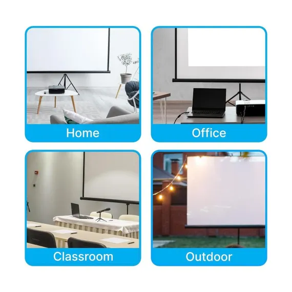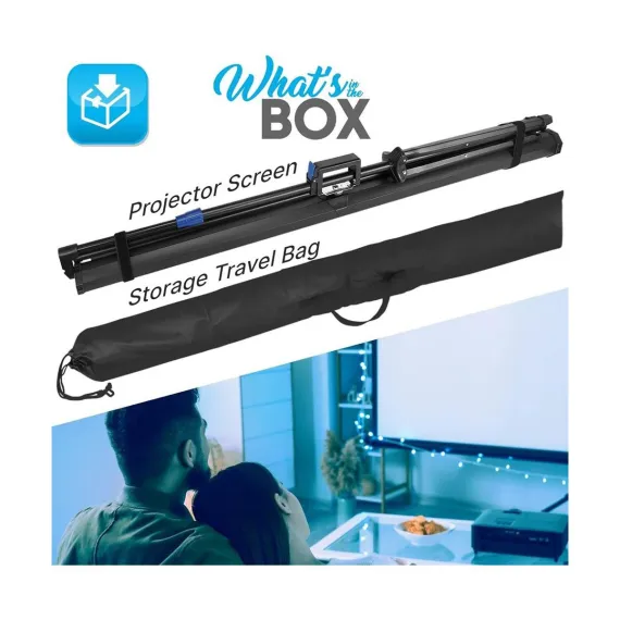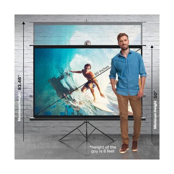 The Pyle 60" Portable Tripod Projector Screen (PRJTP60) is the ideal solution for anyone needing a portable and easy-to-set-up projection screen. With a 60-inch diagonal viewing area and a 16:9 aspect ratio, this screen delivers a cinematic experience perfect for home theaters, classrooms, or business presentations. The lightweight design features a fold-out tripod stand, making it easy to transport and set up wherever needed. The screen is made from a matte white fabric that enhances image clarity and color accuracy. The manual roll-up design with an auto-locking mechanism ensures quick and hassle-free operation. Additionally, black masking borders enhance image focus and alignment, providing a professional touch to your presentations. Whether for movies, meetings, or teaching, the Pyle PRJTP60 makes projection simple and effective.