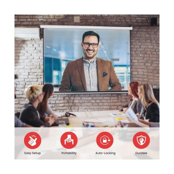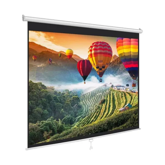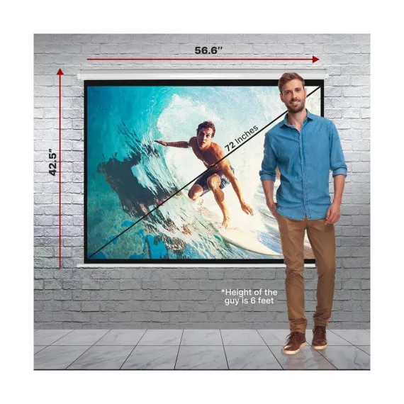 The Pyle 72-Inch Roll-Down Manual Projector Screen is an excellent solution for home, office, or classroom presentations. This screen features a matte white viewing surface, providing vivid and clear image and video projection. The auto-locking roll-down feature allows you to easily adjust and stop the screen at any height. The black masking border ensures your images are properly aligned and focused for optimal viewing. The screen is designed for ceiling or wall mounting with top loops, and the durable, high-quality construction ensures longevity. It’s simple to install and operate – just pull it down and start projecting!