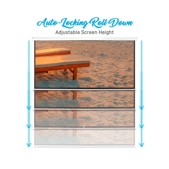 Pyle PRJSM1006 Universal 100-Inch Roll-Down Pull-Down Manual Projection Screen - Matte White