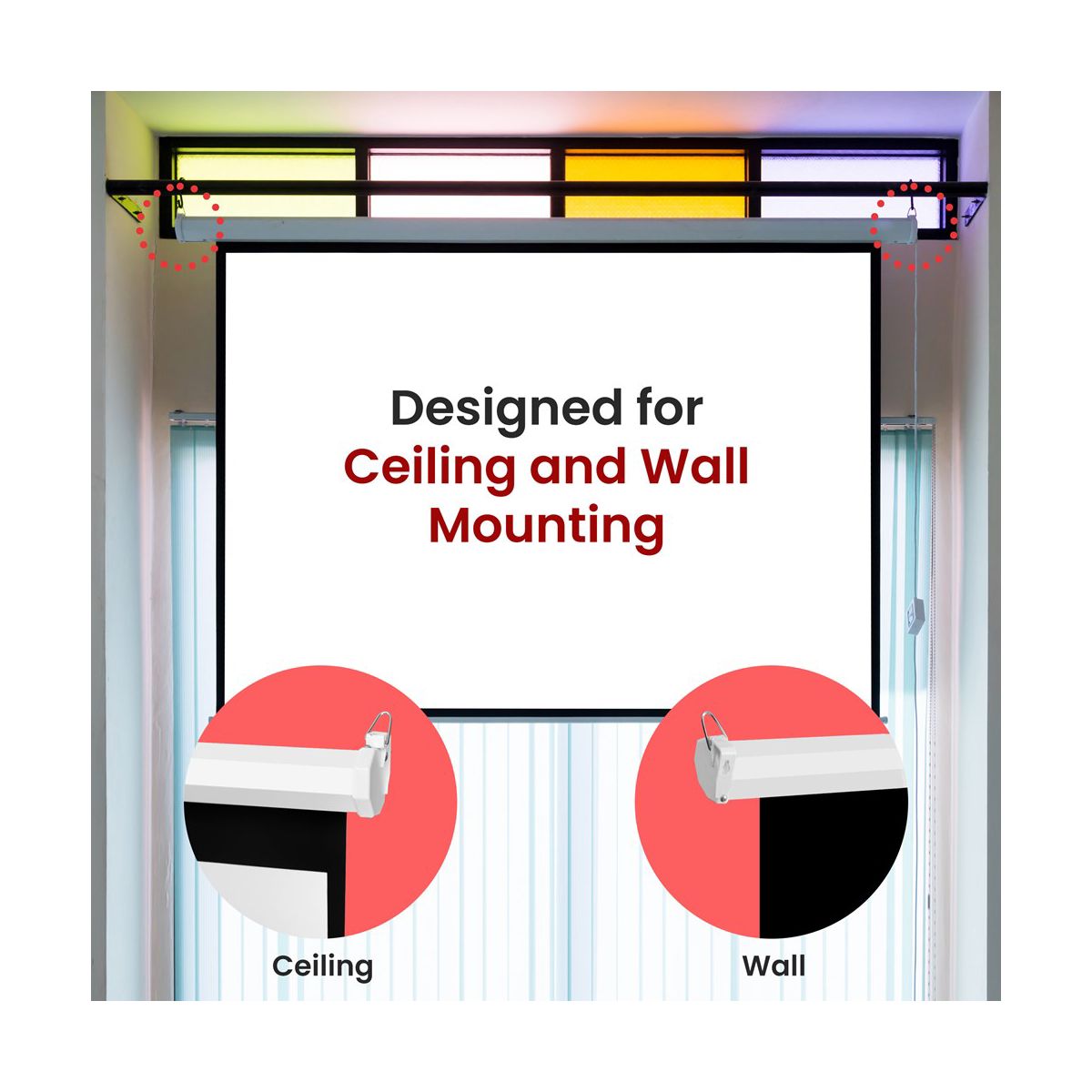 The Pyle PRJSM9406 Universal 84-Inch Roll-Down Pull-Down Manual Projection Screen is the ideal solution for high-quality presentations and media viewing. Designed for easy setup, the matte white screen provides a clear and vivid surface for all your projection needs. Its auto-locking feature allows you to adjust the height and lock the screen at any desired position. The black masking border helps focus and align your projections for optimal clarity. This durable screen can be easily mounted on the ceiling or wall, making it perfect for home theaters, offices, and more. The lightweight, premium-quality fabric ensures smooth operation and easy retraction, so you can quickly roll it up after use.