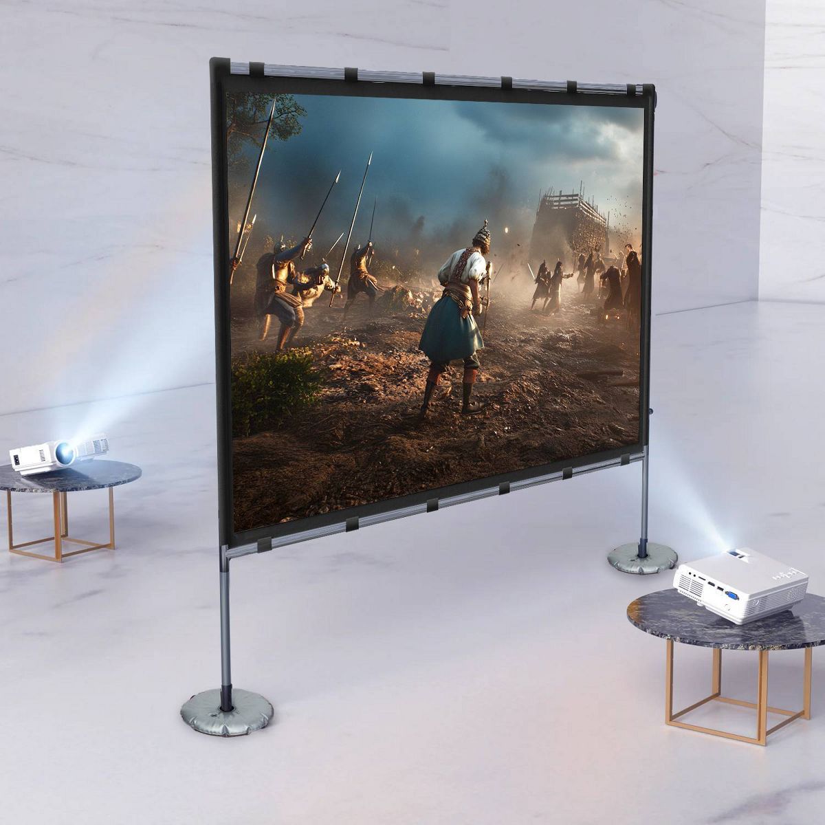 Crafted from premium polyester and spandex, the projection screen epitomizes quality. It seamlessly accommodates 1080p and 4K Ultra HD media, making every visual detail come to life. Boasting a wide viewing angle of over 160 degrees and a gain of 1.1, the screen offers an immersive experience, ensuring that even the slightest nuances are faithfully reproduced. With this screen, precision is the hallmark – razor-sharp images are delivered with utmost clarity, elevating your cinematic encounters to a level of unparalleled brilliance and realism.