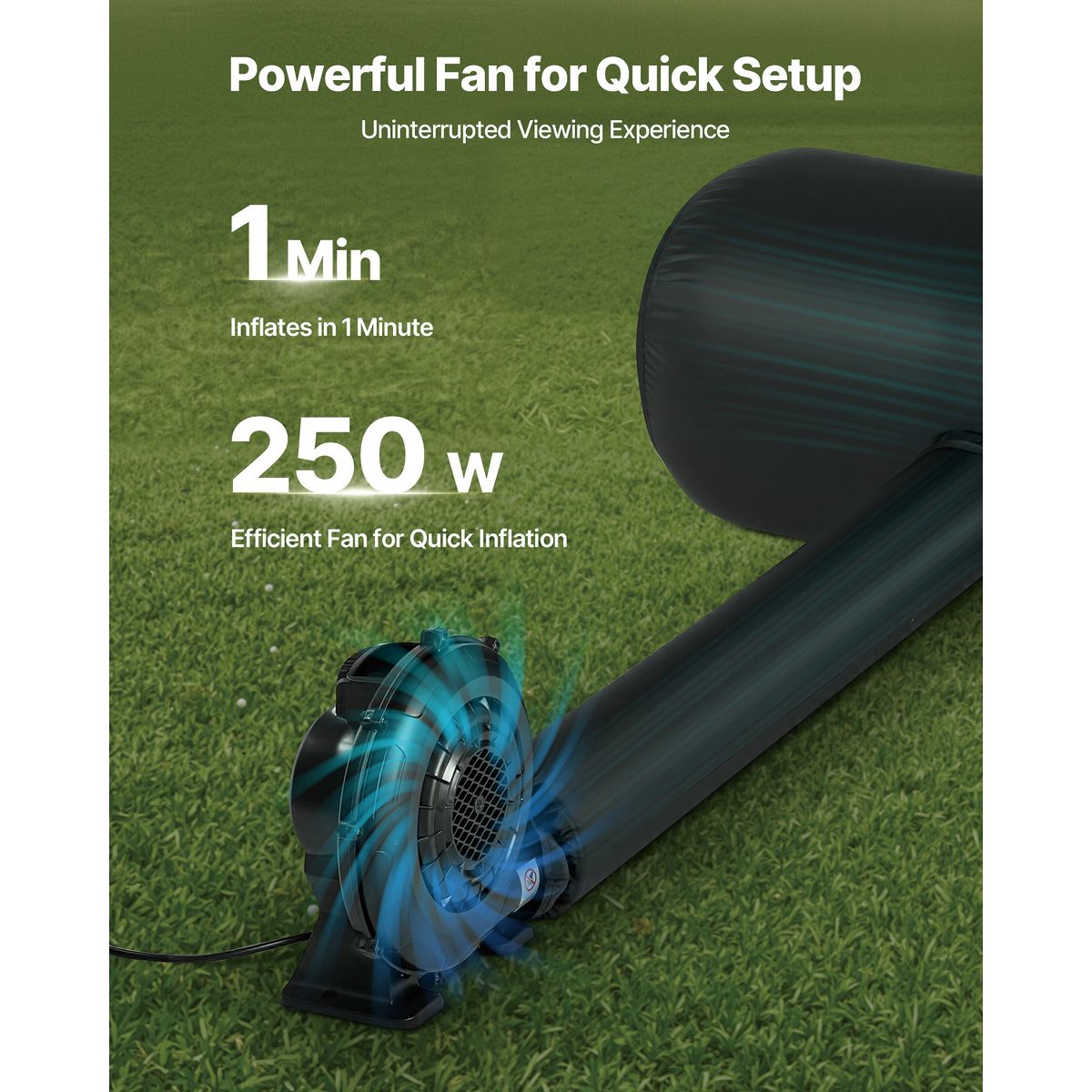 Instant Setup: You can fully inflate this inflatable movie screen in one minute with our powerful 250W low-noise blower (included) and keeps it extended throughout the show when plugged in. The screen can be deflated and folded easily and stored in a portable bag for space-saving