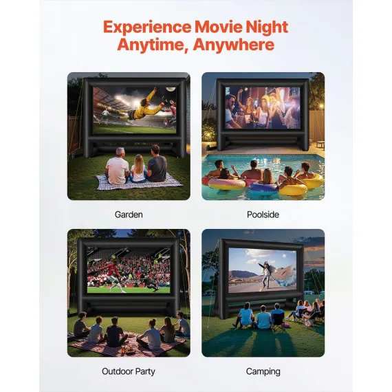 Expansive Viewing Angle: With its wide-angle design, our inflatable screen allows multiple people to enjoy movie nights simultaneously. No matter where you sit, you can easily enjoy a wide viewing angle, immersing yourself in a comprehensive audio-visual experience