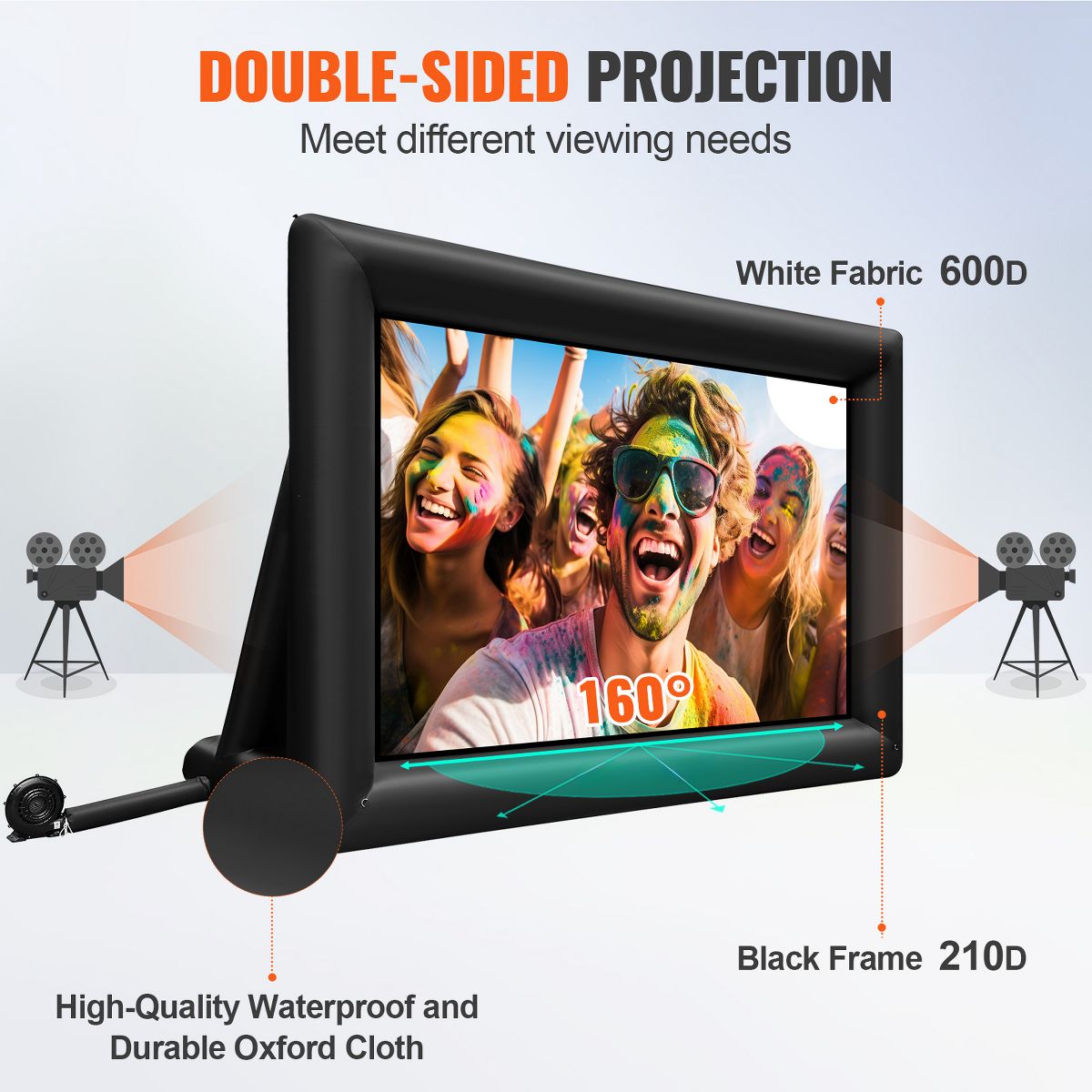 VEVOR Inflatable Movie Screen 20FT Inflatable Projector Screen for outside with 350W Air Blower Inflatable Screen Oxford Fabric Material, Black