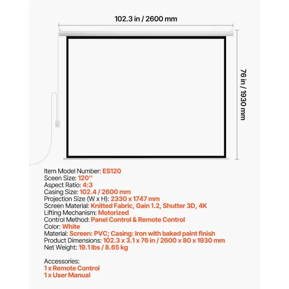Effortless Control: The projection screen provides 164 ft/50 m wireless remote control and wired panel touch functionality, allowing you to effortlessly adjust the screen height with ease. Experience the convenience of seamless control at your fingertips