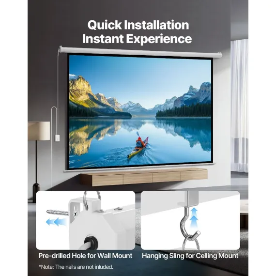Exquisite & Vivid Visuals: Crafted from high-reflectivity, wrinkle-free PVC material, the projector screen delivers 4K and shutter 3D high-definition visuals. Frame is rendered in detail, ensuring a flawless, immersive cinematic experience in dark and bright