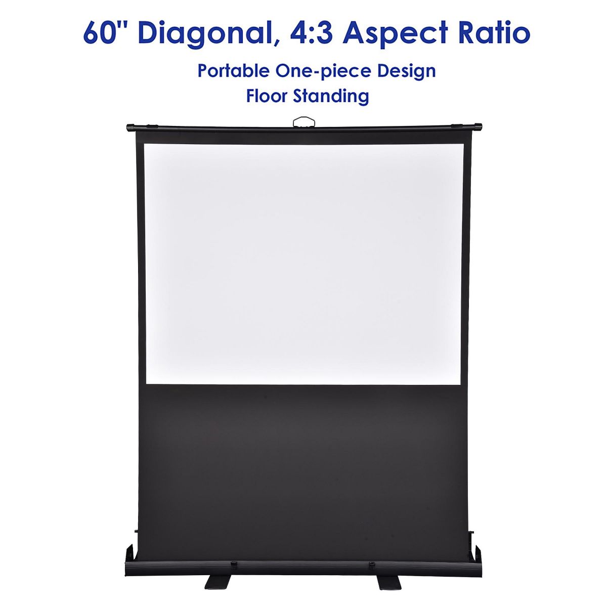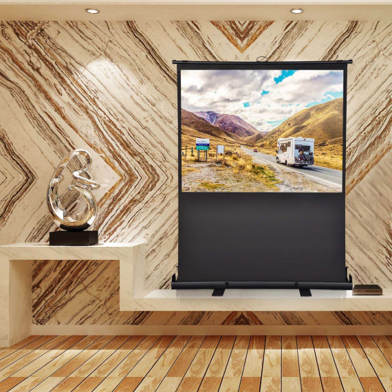 Features:- Portable Design - 60" Pull Up Floor Projector Screen features a one-piece design and can be retracted fully into the case, ensuring easy storage, transport and perfect working synergy with handheld projectors for playing video presentations on-the-go- Pull-out to Use - Self-standing design with stable feet and telescoping pull-up mechanism that provides fast & quiet extension while the self-lock system allows the screen to stop at any desired position when you pull up to suit your preference- Good Light Diffuser - 60" large matte white screen features 160 degree viewing angle for large viewing area and 1.3 gain to provide sharp and clear image, suitable for projections of all resolutions up to 4K or Ultra HD; Standard 4-side black borders help to increase picture focus & contrast for better viewing experience- Durable & Stable - Strong and rust-resistant aluminum frame and housing ensure frequent and long-lasting usage; Lockable feet to stabilize the screen when installed- Widely Applicable - Floor Projector Screen is ideal for indoor and outdoor use such as home theater, outdoor garden viewing, trade fair, meeting room and more to conveniently provide quality viewing wherever you areSpecifications:- Unfolded Overall Dimension(LxWxH): 52 3/4" x 15 9/16" x 82 5/16" (134 x 39.5 x 209 cm)- Folded Overall Dimension (LxWxH): 52 3/4" x 4 3/4" x 5 1/8" (134 x 12 x 13 cm)- Viewing Area Size (LxW): 48" x 35 7/8" (122 x 91 cm)- Diagonal: 60" (152 cm)- Aspect Ratio: 4:3- Viewing Angle: 160 degrees- Gain: 1.3- Net Weight:19.95 Lbs (9.05 kg)Package Contents:- 1x Pull-Up Projector Screen- 1x ManualNotice: - Suitable for front projection