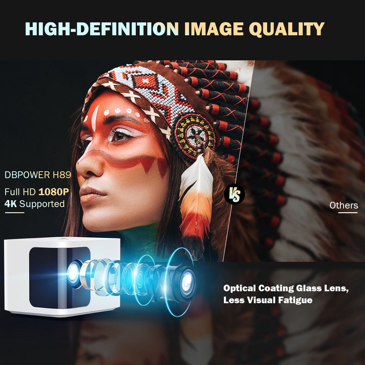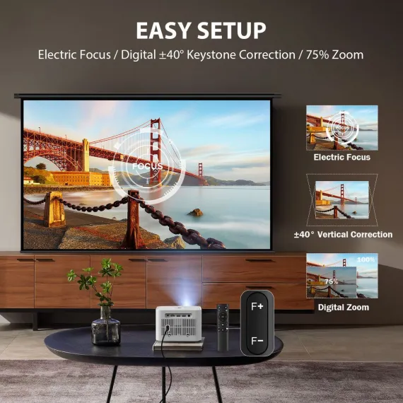 Enjoy big-screen entertainment anywhere with this portable mini projector featuring native 1080P resolution, 300 ANSI lumens brightness, fast 5G WiFi streaming, Bluetooth audio, and flexible image adjustment for home or outdoor movie nights.