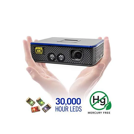 AAXA 4K1 LED Home Theater Projector, 30,000 Hour LEDs, Mercury Free, Native 4K UHD Resolution, Dual HDMI with HDCP 2.2, 1500 Lumens, E-Focus