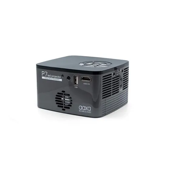 - All-in-One portable projector featuring an Onboard Media Player with USB and TF card ports and a 2W speaker for direct media playback. Other inputs include HDMI, mini-VGA, and Composite AV. Measures just 4.7" x 4.4" x 2.7" and 1.48 lbs - the P7 fits nicely in your laptop bag or briefcase for travel and outdoor camping