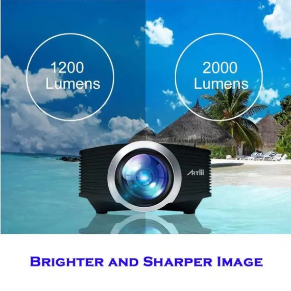 Artlii Mini Projector - Portable Projector for Kids, Eye Protection,Built-in HiFi Speaker,2000 Lumens Brightness,160 Inch Screen,Compatible with Laptop, iPhone Smartphone