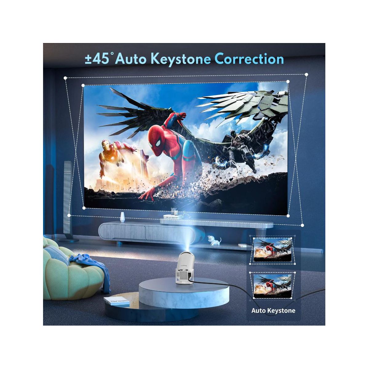 ARTSEA Mini Portable Projector, 4K Smart Projector with WiFi 6 BT 5.0, Home Video Projector Built-in Android 11.0 OS with Auto Keystone Function