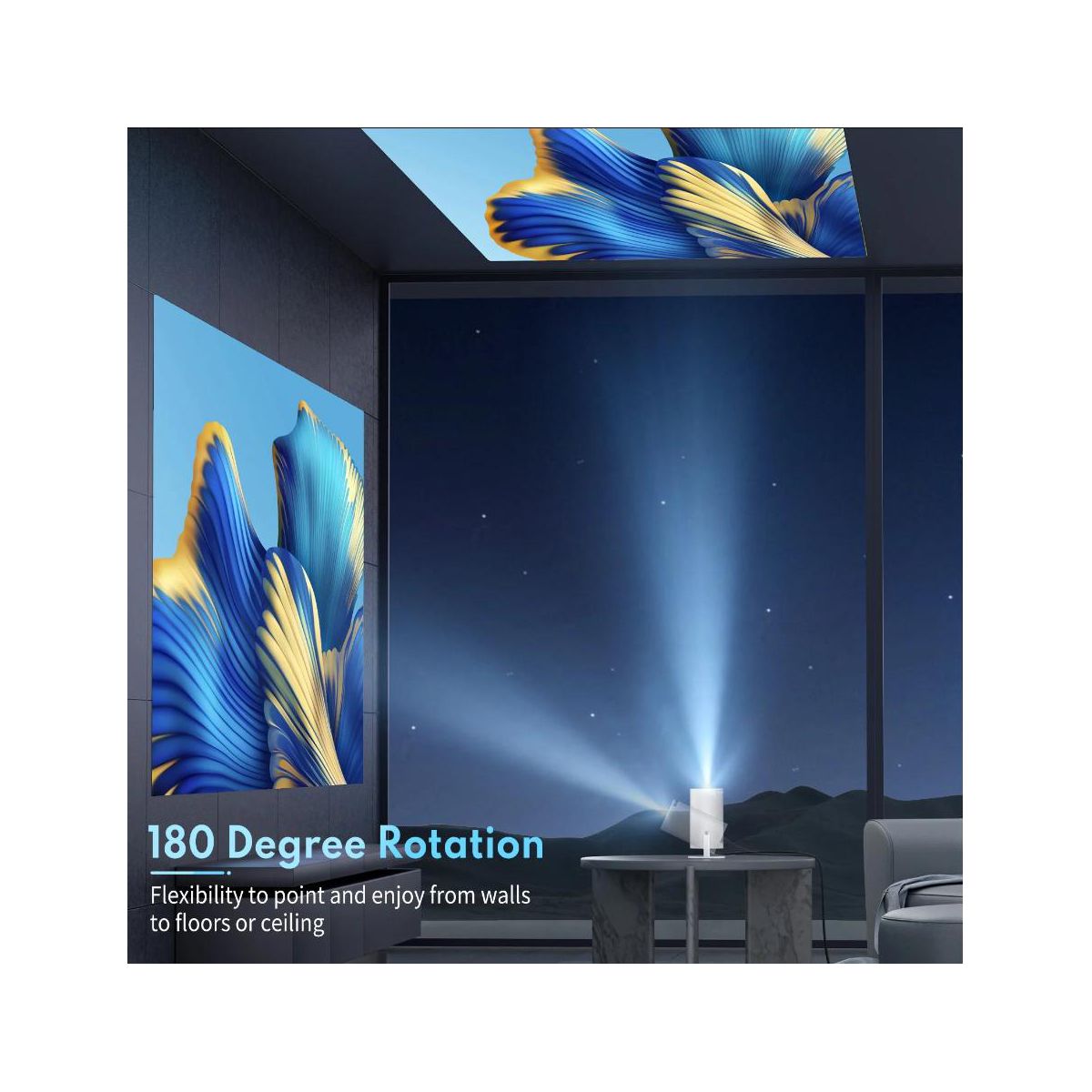 Experience stunning visuals with our portable projector: enjoy crisp 720p resolution and support for 4K video playback, along with an impressive brightness of 200 ANSI 8000 lumens and a superb 10000:1 contrast ratio. With a flexible 16:9/4:3 aspect ratio,it suits all your viewing needs. Equipped with dual Wi-Fi 6 connections (2.4G & 5G), ensuring a stable signal and rapid transmission speed. Plus, powered by Android 11.0, it operates as a standalone device, providing convenience and versatility. Featuring Bluetooth 5.0, it seamlessly connects to various Bluetooth speakers, allowing you to enjoy music wirelessly. Benefit from automatic horizontal keystone correction and manual trapezoidal correction for optimal viewing experiences and image quality. With built-in screen mirroring supporting Miracast, Airplay, and DLNA, you can mirror your screen from anywhere, enhancing versatility. Powered by ARM Mali-G31 MP2 GPU, it delivers ultra-fast processing speed and professional image processing capability. Immerse yourself in captivating audio without the need for external speakers, taking your entertainment to the next level. With a projection size ranging from 40"" to 200"" and a projection distance between 4.9ft to 18.4ft, adjust for the perfect viewing size manually. Connect multiple devices effortlessly with built-in ports (HD, AV, USB, 3.5mm headphone), an included HD cable, and compatibility with TV sticks/boxes, game consoles, PCs, smartphones, tablets, laptops, and USB pen drives. Enjoy a seamless multimedia experience with our versatile projector. Special Features: � Dual-Band WiFi 6, Compatible with 2.4G and 5G WiFi � Bluetooth 5.2 Connection � 4K Support & Max 200"" Display � 180inch Rotatable Projection 45 Degrees Auto Keystone Correction"