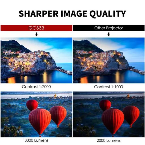 ELEPHAS Mini Projector, Full HD 1080P and 180" Display, 3600 Lux Portable Home Theater Projector with 50,000 Hours LED Lamp Life, Compatible with USB/HD/SD/AV/VGA Interfaces
