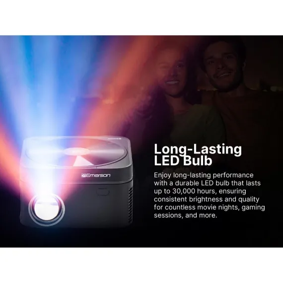The Projector with DVD Player combines the power of an LCD projector with the convenience of multimedia playback in one sleek device. With a 720P native resolution and up to 100 Ansi Lumens brightness, enjoy crystal-clear images on large screens from 32" to 120". Stream media through a variety of sources, including USB flash drives, Micro SD cards, HDMI, or AV IN, or connect your favorite streaming devices such as Roku®, Amazon® Fire Stick, or Google® Chrome Stick (devices sold separately). The built-in speakers provide great sound, while the 30,000-hour LED bulb ensures long-lasting performance. Control the projector from the comfort of your couch with the included remote control. Whether you’re watching movies, playing games, or enjoying your favorite shows, this projector offers a versatile and immersive experience for all your entertainment needs.