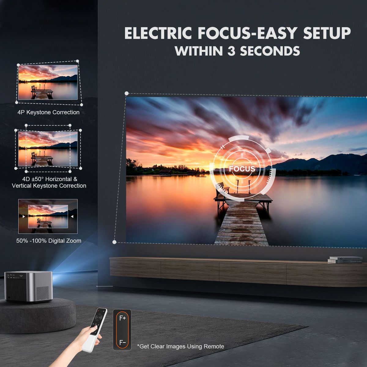 FHD 1080P Projector with 800 ANSI Lumens, 4K Support, WiFi 6 5G/2.4G & Bluetooth 5.2, Electric Focus, 4P/4D Keystone, Zoom & Sealed Engine