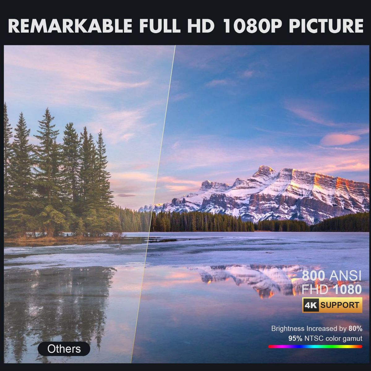 Bring big-screen entertainment home or outdoors with this Full HD 1080P projector featuring 800 ANSI lumens brightness, sealed optical engine, fast WiFi 6 connectivity, electric focus, and flexible image adjustment for movies, gaming, and presentations.