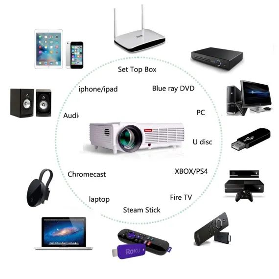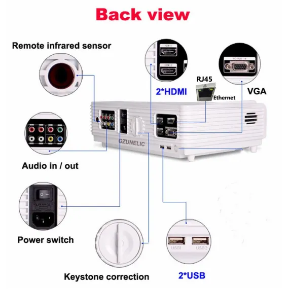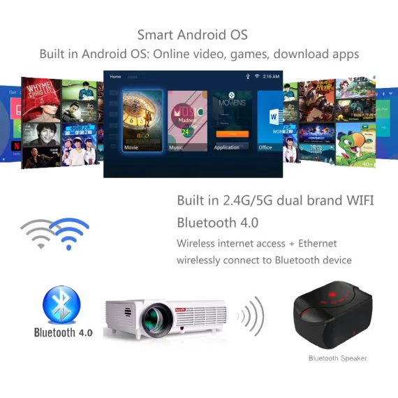 Gzunelic 4200 lumens 1080p Video Android WiFi Projector LCD LED Full HD Theater Proyector with Bluetooth Wireless Mirror to Smart Phones by Airplay or Miracast Ideal for Home Entertainment