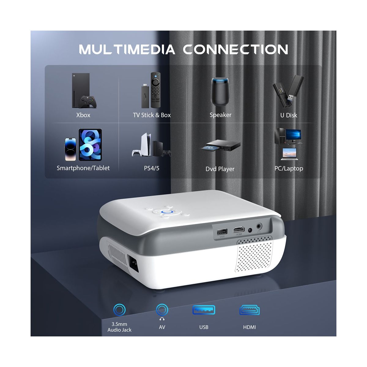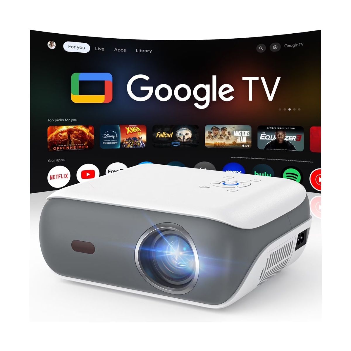 Transform any space into a cinematic experience with the HAPPRUN Smart Projector. Featuring Google TV 11.0, Dolby-certified audio, and Native 1080P resolution, this Google projector delivers rich visuals and immersive sound for your favorite movies, TV shows, and games. Enjoy seamless streaming with built-in apps like Netflix, YouTube, and Prime Video, without the need for an external TV stick. With dual-band WiFi, wide connectivity options, and powerful 3D stereo sound, the The HAPPRUN projector is perfect for both home and outdoor entertainment. Perfect for Home & Outdoor Use: Whether you're hosting a movie night at home or enjoying an outdoor screening, the HAPPRUN projector with wifi and Bluetooth brings your entertainment to life. Mount it on the ceiling for space-saving convenience, or take it with you for flexible viewing options. Specifications: