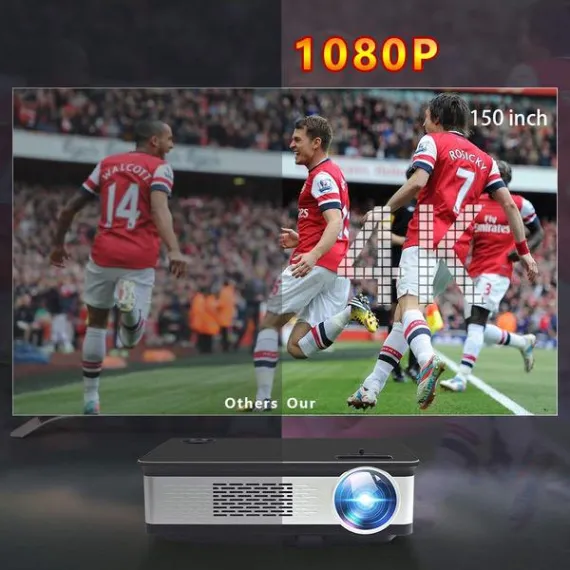 Home Theater Projector,HDEYE Native 1080p Full HD LED Video Projector - Up to 165 Inch Size Big Screen,3000 Lumens,Compatible with Fire TV Roku Sticks,USB,DVD,SD,PS4,Laptop (Black)