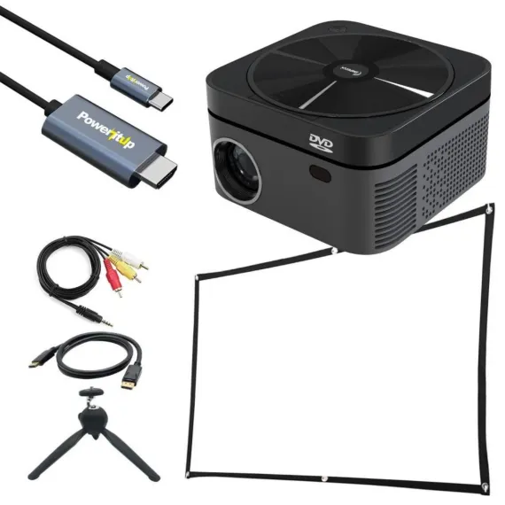 Impecca 120” Home Theater DVD Projector, 110 ANSI Lumens, 720P + USB-C to HDMI & Accessory Kit