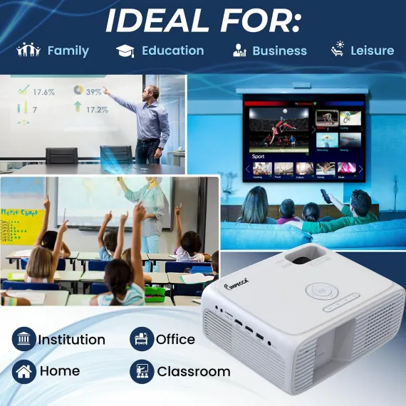 Transform your home-viewing experience with IMPECCA DVD Home Theater Projector Bundle. This all-in-one package includes 1 high-performance LED projector with integrated DVD player , delivering vivid 720p HD visuals and immersive sound right out of the box. Bundle includes: 100” white projector screen for cinematic experience, adjustable tabletop tripod to perfect projecting position, 6FT HDMI cable for high-definition connectivity via Laptop or computer, and AV cable assembly for versatile input options. Included USB-C to HDMI 4K High-Speed Cable enables seamless connectivity and video streaming from smartphones or tablets, ultra-fast data transfer . Setting up a home theater? Hosting a movie night? VP222KIT12 offers exceptional performance and convenience for an immersive entertainment experience.