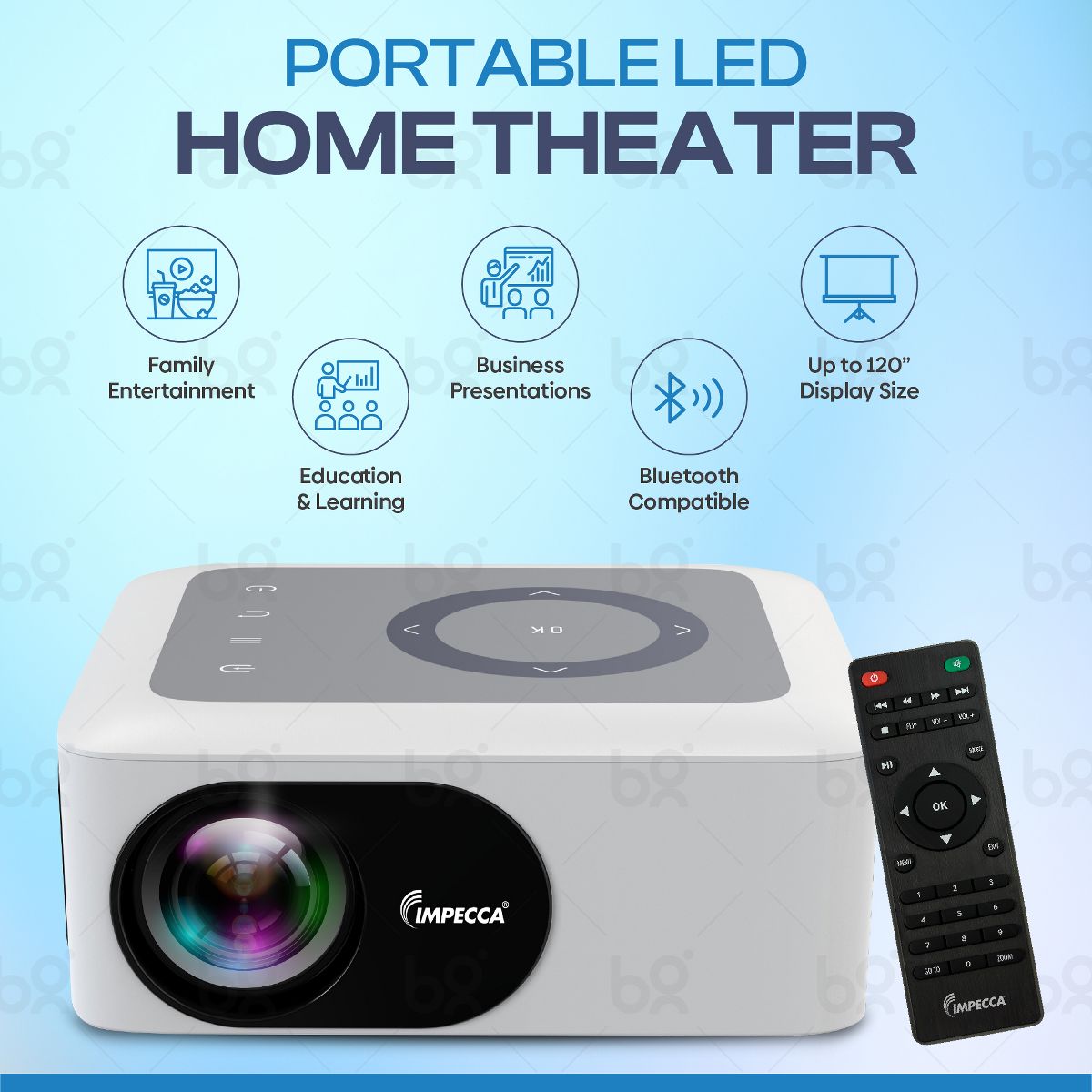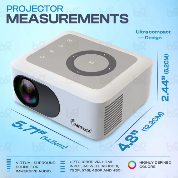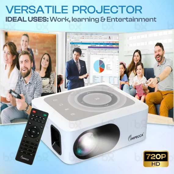 Impecca 120” Portable Home Theater Projector, 80 ANSI Lumens, 720P + USB-C to HDMI Kit