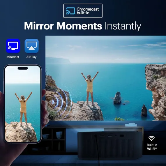 Transform any space into your personal theater with the KODAK FLIK X20 Full HD Smart Projector. Designed for everyday entertainment, this smart projector with wifi and bluetooth option is perfect for streaming, gaming, or family movie nights. Built-in Google TV apps including Netflix let you dive straight into movies and shows without extra devices. Whether you want a home theater projector in your living room, a mini smart projector for dorm life, or a portable smart projector for RV trips, the FLIK X20 delivers crisp Full HD visuals with 4K support. With its WiFi projector with apps design and Bluetooth projector connectivity, streaming and sharing content is effortless, making it the ultimate smart home projector for modern lifestyles.