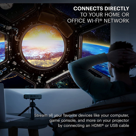 Whether you’re viewing movies, streaming shows, playing games, or watching home videos, with this wifi projector content appears clearer, brighter, sharper, and more vivid than before. And with 100% offset and automatic keystone correction built right in, there’s no worrying about manual adjustment. Multiple connectivity options make the movie projector compatible with virtually all popular devices. Use the onboard Wi-Fi, Bluetooth, USB, and HDMI inputs in the portable smart projector to stream shows from your favorite subscription service; play videos from a smartphone or laptop; or plug and play content from a DVD player, TV box, flash drive or gaming console. High-quality speakers and a remote control round out this amazing anywhere Bluetooth projector. So, are you ready to supersize your screen? Add the KODAK Luma 400 projector with speaker to your cart today!