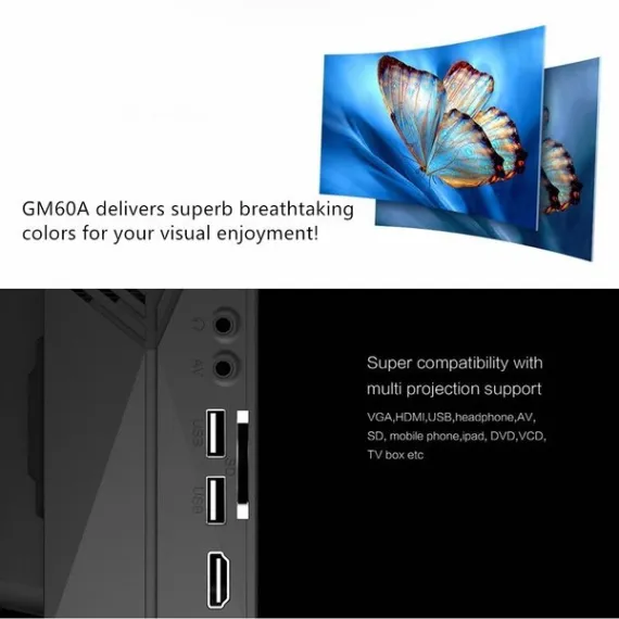 Meer Portable GM60A Multi-Screen Mirroring Display Function Multimedia LED Projector with Optical Keystone for Home Cinema Entertainment