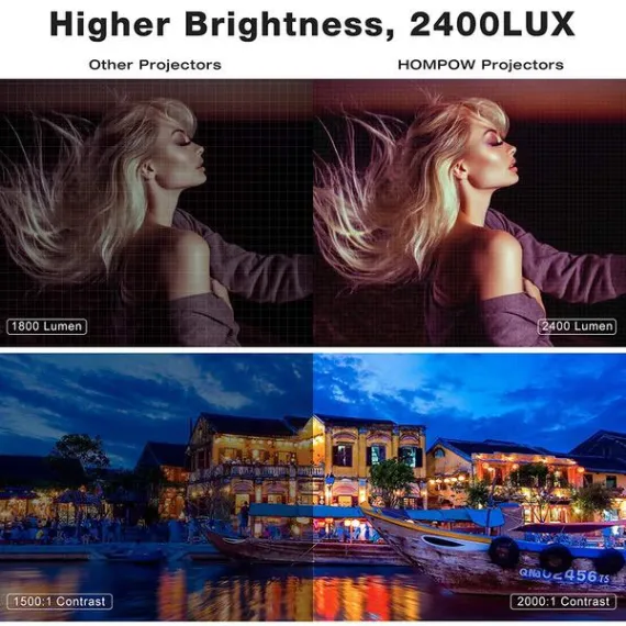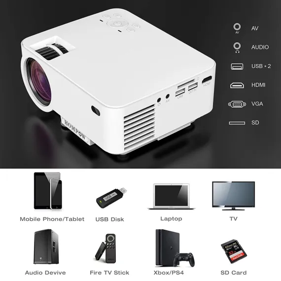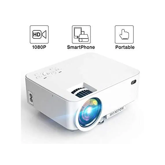 Mini Projector - 2400Lux Hompow Portable Video Projector 1080P Supported 176" Display, 50,000 Hours Led,Smart Phone Compatible with TV Stick/HDMI/VGA/USB/TV Box/Laptop/DVD/PS4 for Home Entertainment