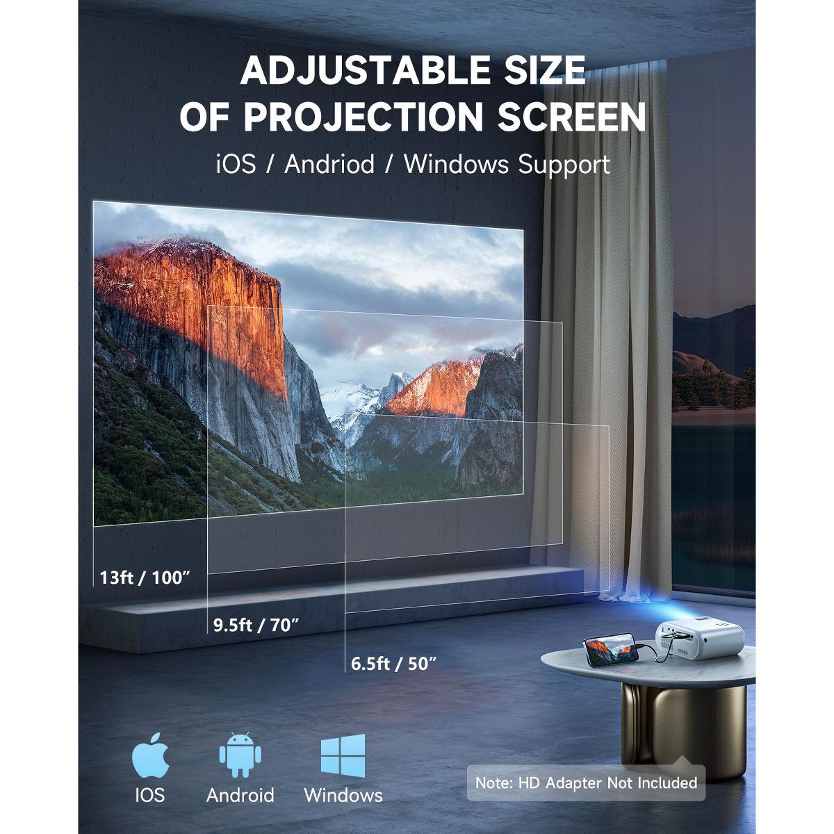 Mini Projector with 9000 Lux and Full HD 1080P, Movie Projector Compatible with iOS/Android Phone/Tablet/Laptop/PC/TV Stick/Box/USB Drive/Game Console