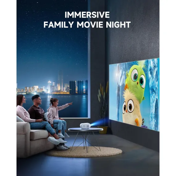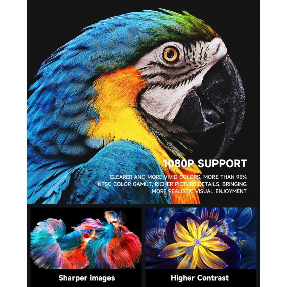 Experience bright, 1080P Full HD visuals up to 180 inches with our compact, lightweight projector—perfect for movies, gaming, and outdoor fun. Connect effortlessly to phones, laptops, and game consoles via multiple ports. Enjoy immersive sound with built-in Hi-Fi speakers and low-noise cooling, all while protecting your eyes with diffuse reflection technology. Portable, powerful, and ready to go—your all-in-one entertainment solution!