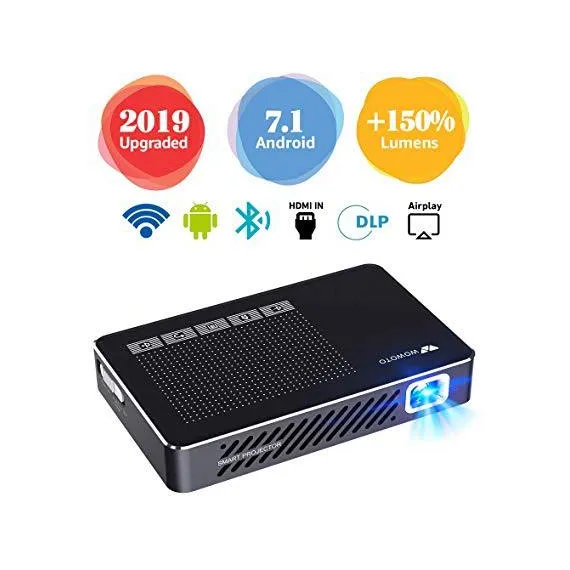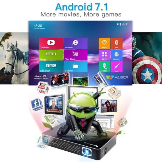 Mini Projector WOWOTO A5 Pro 100ANSI Android 7.1 2+32G Portable DLP Video Projector 150" Home Theater Projectors with BT4.0 Support WiFi Wireless Screen Share 1080P HDMI USB SD Card