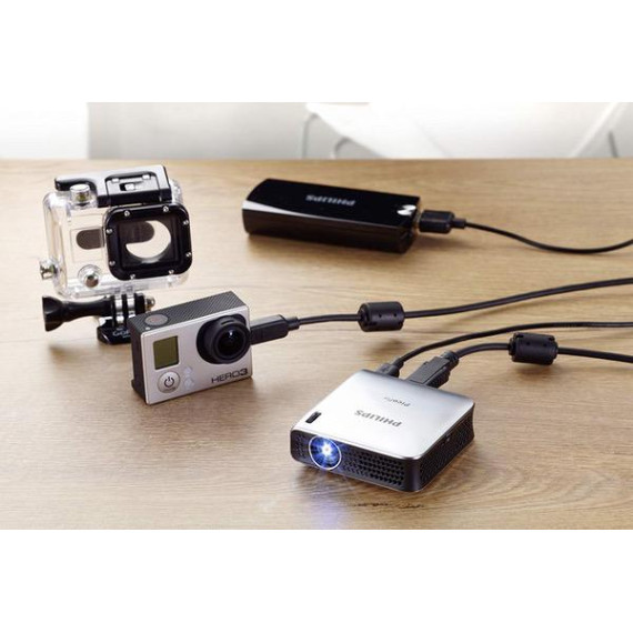 Philips PPX4010 Portable LED Pocket Projector, 100 Lumens, with USB, HDMI Connectivity, 120" Video Projection, 2.9 Oz