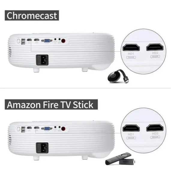Projector, COFUN CL760 3600 Lux Full HD Led Video Projector Support 1080P for Games/Movies/Home Cinema, Compatible with Fire TV Stick,DVD,PC/Laptop,PS4 by HDMI USB AV VGA, Free HDMI Cable