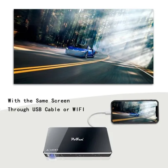 Projector,PoFun Mini Portable Bluetooth Video Andriod 7.1 Projector for Phone,Pad and Laptop,Mobile Projector with 120 inch Display,Pico HD Projector Include Warranty Support WI-FI