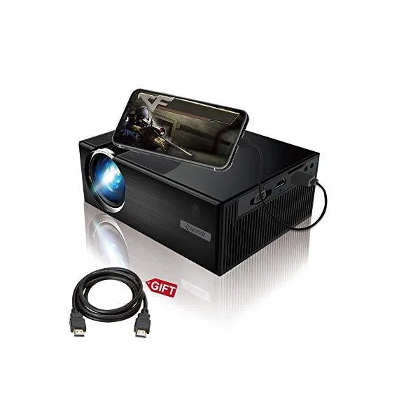 - [Multimedia & Multi-Compatible Projector With Portable Size]: Queretek mini projectors compatible with smart phone (Android or iOS), laptop, tablets, Amazon Fire TV Stick and TV BOX, Game console such as PS4, X-Box ONE or Wii to enjoy BIG games. This portable projector is built in a variety of inputs interface, such as USB VGA and AV HDMI headphone jack. HDMI is a bonus included.