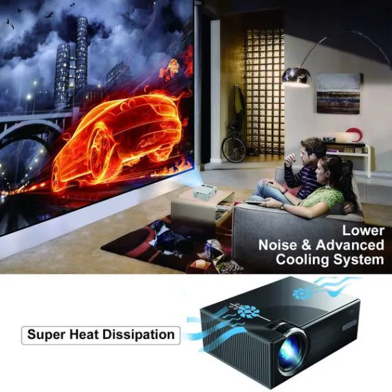 - [Lower noise & Longer lamp life]: Queretek projectors are equipped with a leading cooling system with awesome heat dispersion, which cut 50% noise. The LED lamp life was extended to 50,000 hours. It will provide you with more quieter and comfortable home theater environment when enjoy your Family Prime Time.