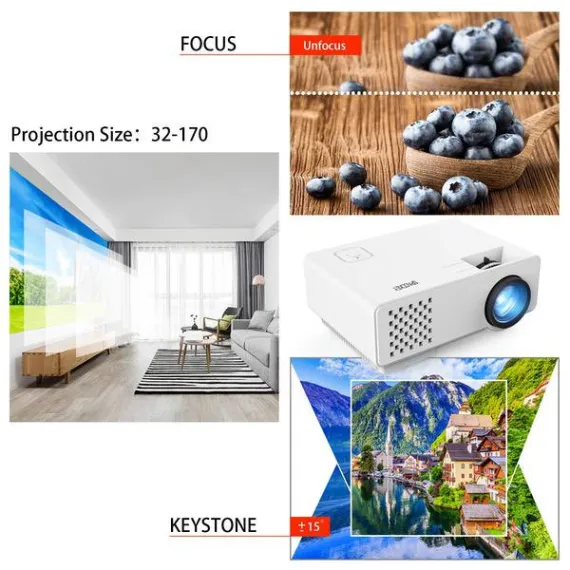 Projector, Spacekey LED Mini Video Projector for Multimedia Home Theater, Supports 1080P, Laptops, Smartphones, Amazon Fire TV Stick & DVDs via HDMI, USB, VGA & AV (RD810)