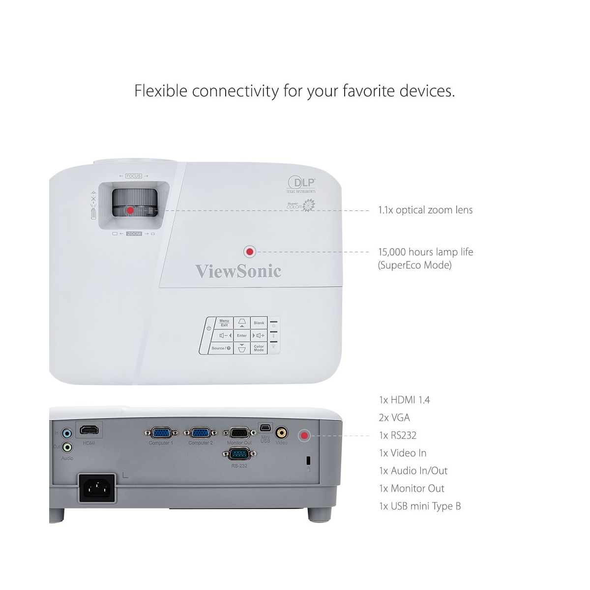 The ViewSonic PA503X price-performance projector features 3,800 lumens, native XGA 1024 x 768 resolution, and intuitive, user-friendly design. Exclusive SuperColor technology offers a wide color gamut for beautiful image production in nearly any environment. The PA503X also features extensive connectivity including HDMI, 2 x VGA, VGA out, Composite Video and audio in/out. An energy-saving SuperEco feature reduces power consumption and extends the lamp life by up to 15,000 hours*. With advanced audio-visual features, flexible connectivity options, and an affordable price, the PA503X is ideal for use in education and small business environments. ***** Manufacturer Refurbished Product. Please note that this is a pre-owned item. - Manufacturer Refurbished
