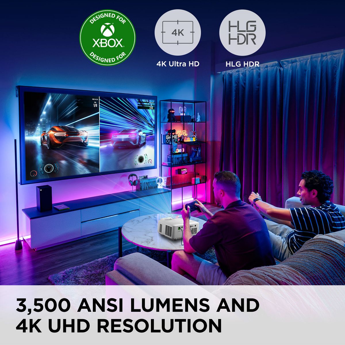 Refurbished: ViewSonic LX700-4K 3500 Lumens 4K UHD Laser Gaming Projector for Xbox - Manufacturer Refurbished