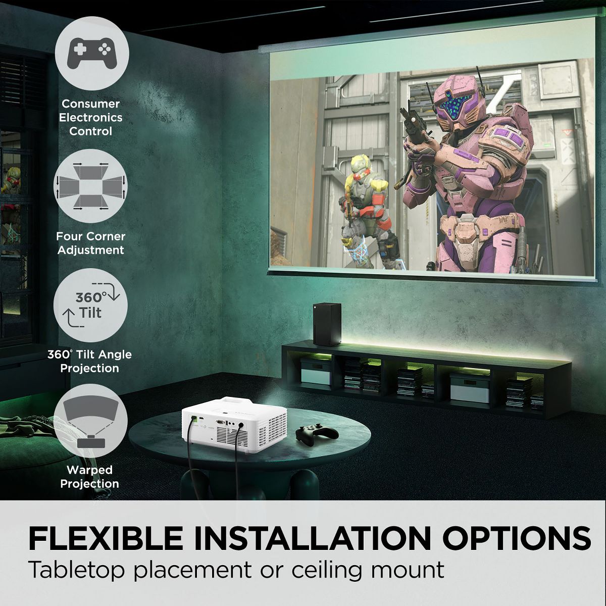 Level up your gaming setup to a bigger, brighter entertainment extravaganza with the LX700-4K gaming projector. Featuring 3,500 ANSI lumens of stunning brightness, the ViewSonic "Designed for Xbox" 4K laser projector lets you immerse yourself in visually stunning movies and games - even in environments with high ambient lighting. Play through your favorite content on screens up to 300" or binge on a big-picture cinematic experience from the comfort of your home. Designed in partnership with Microsoft, this high-brightness projector delivers Xbox-native refresh rates and resolutions for a gaming experience that can’t be beat. Accelerate your gameplay with 1440p resolution at a 120Hz refresh rate for the perfect balance between visual perfection and accuracy, or put the pedal to the metal by taking this projector to its maximum 240Hz refresh rate. Enjoy an enhanced, maintenance-free lifespan of up to 30,000 hours without ever needing to replace your lamp. Plus, with other features like V lens shift, 1.36x optical zoom, H/V keystone and four-corner adjustment, you can effortlessly build the big screen gaming and entertainment setup of your dreams. - Manufacturer Refurbished