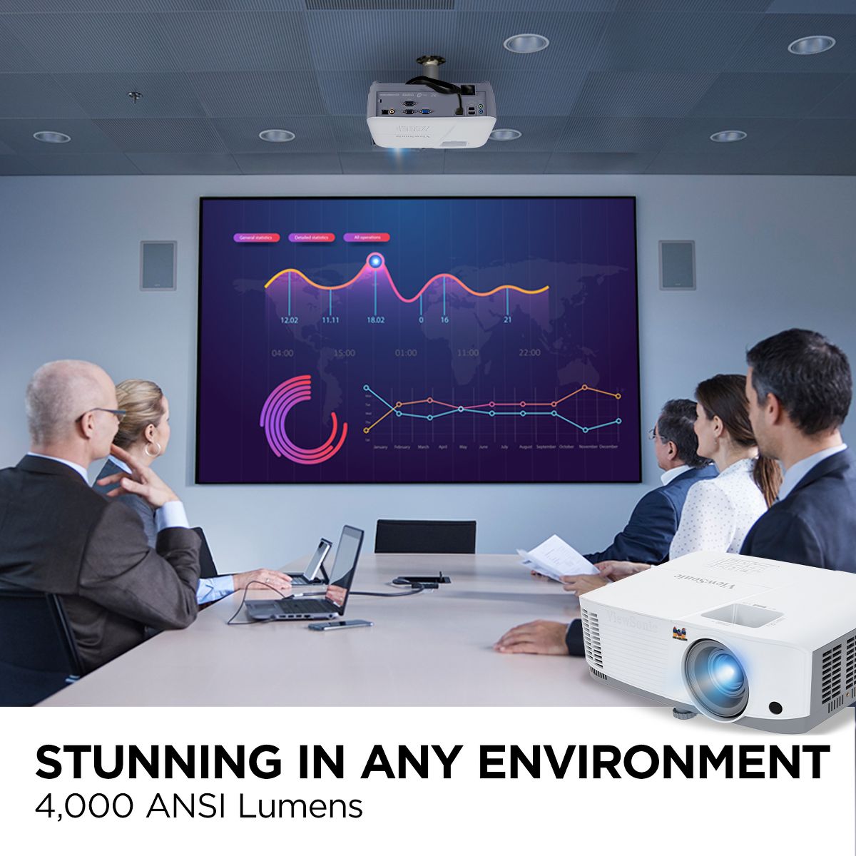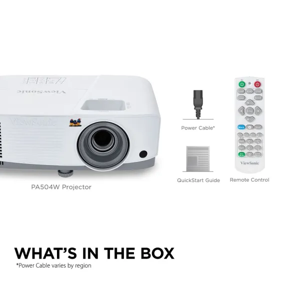 Upgrade your projector setup with the ViewSonic® PA504W high-brightness projector. Featuring a versatile 1.21 – 1.57 throw ratio, this projector can be easily installed onto most existing projector mounts. Plus, with 4,000 ANSI lumens of brightness, audiences can enjoy stunning clarity – even in environments with strong ambient lighting. A Texas instruments .65” DMD chip delivers a high native contrast ratio to make images clearer and more compelling. Each PA504W projector features a sealed optical engine that reduces maintenance as well as state-of-the-art DLP® technology that enables users to enjoy consistent colors and enhanced clarity over an extended period. Connect your projector to Crestron, AMX, PJ Link, ATEN, Extron or other LAN control systems for streamlined device management. Dual HDMI ports enable users to easily switch between content sources. Add an optional ViewSonic WPD-700 Wireless Screen Casting Kit to the projector’s USB-A port to make casting content both faster and cable-free. - Manufacturer Refurbished