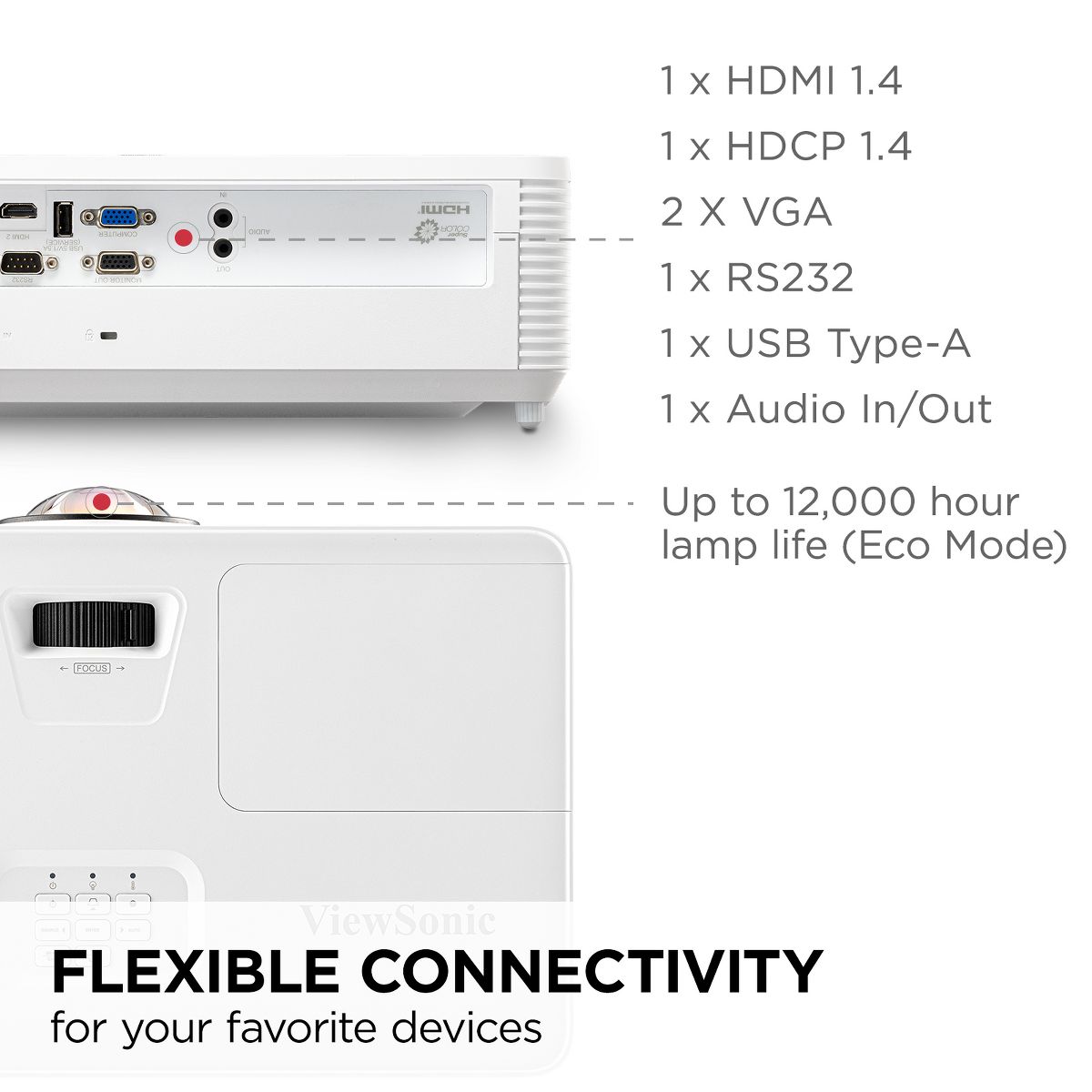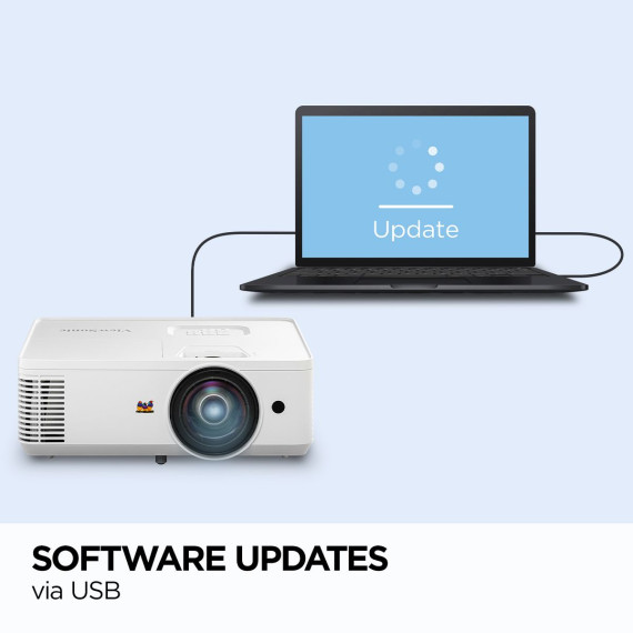 Light up classrooms and conference rooms alike with the ViewSonic® PS502W WXGA short throw projector. Featuring 4,000 ANSI lumens of stunning brightness, this powerful business and education projector creates crystal clear images up to 300”. And with a 0.52 short throw ratio, this projector is capable of displaying shadow-free 100” images from just a few feet away. The PS502W projector also comes with multiple connectivity options for greater convenience. Dual HDMI ports empower users to connect multiple devices directly to the projector. Once connected, the projector can conveniently switch between different input sources at the press of a button. A USB-A port provides power to wireless HDMI dongles for a more convenient streaming experience. Rather than taking your projector to the service center, software updates can be performed easily over a simple USB cable.