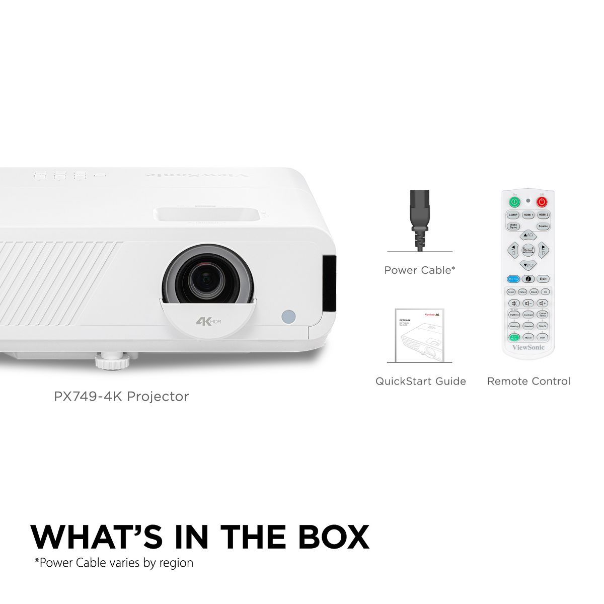 The ViewSonic PX749-4K is an Ultra HD high-brightness projector that delivers stunning entertainment to your home theater. Boasting true 4K UHD resolution and HDR/HLG support, it ensures vivid, lifelike visuals for movies, sports, and gaming. Plus, thanks to 4,000 ANSI lumens of brightness, this projector delivers bright images in nearly any environment. Designed in partnership with Microsoft, this "Designed for Xbox" projector offers Xbox gameplay with 1440p native resolution at a 120Hz refresh rate and ultra-fast 4.2ms input lag. For other high-action games and movies, this projector can deliver a 240Hz refresh rate! No matter what you watch or how you play, the PX749-4K provides awesome visuals on screens up to 300”. ***** Manufacturer Refurbished Product. Please note that this is a pre-owned item. - Manufacturer Refurbished